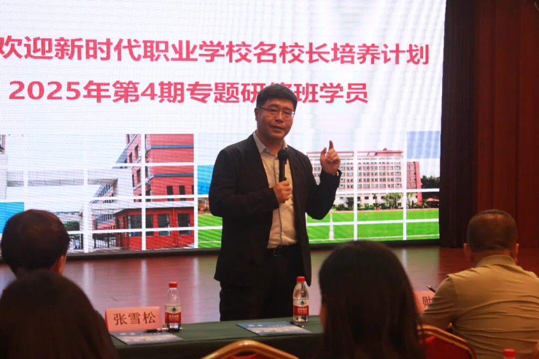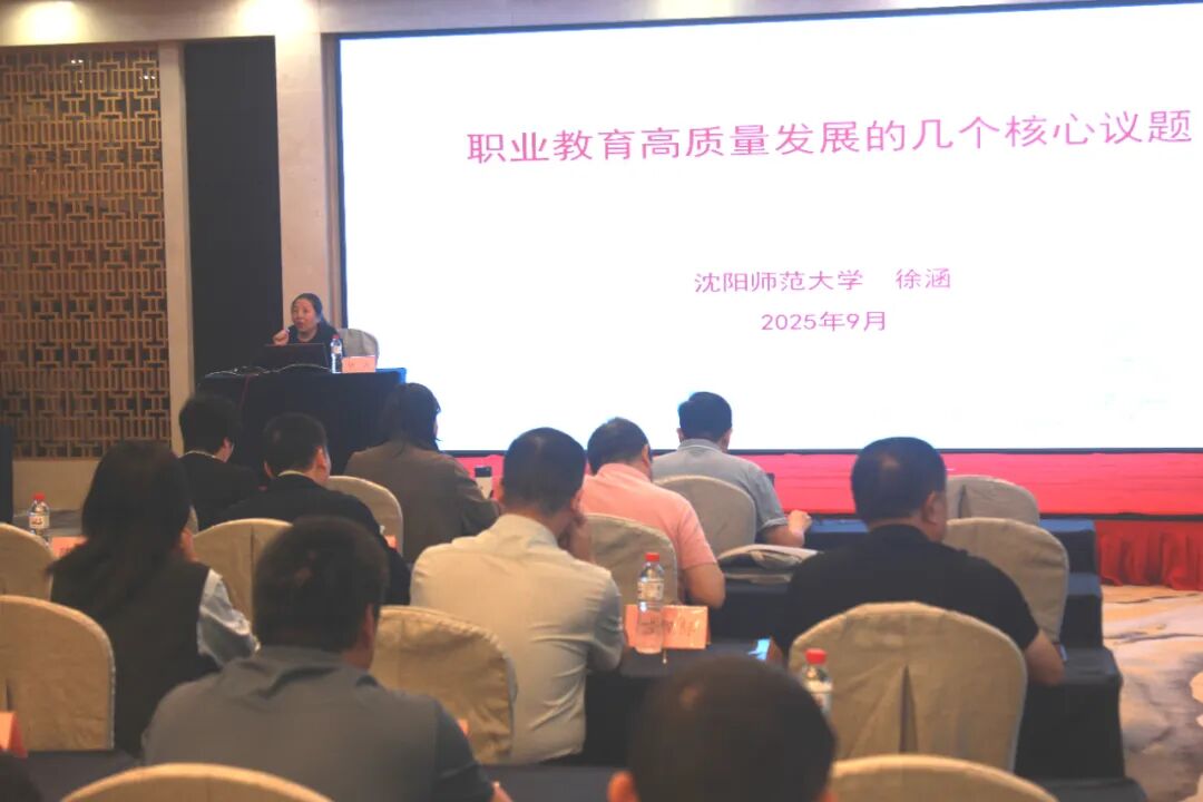 辽宁省职业技术教育学会秘书长高红梅对“教育强国背景下中职高质量发展”进行了深度解读。她提出,中等职业教育应强化思政引领,推进职普融通与中高本贯通,全面提升服务经济社会发展的能力,并从政策衔接等多个维度提出了具体建议,引发了参训校长的强烈共鸣与深入思考。