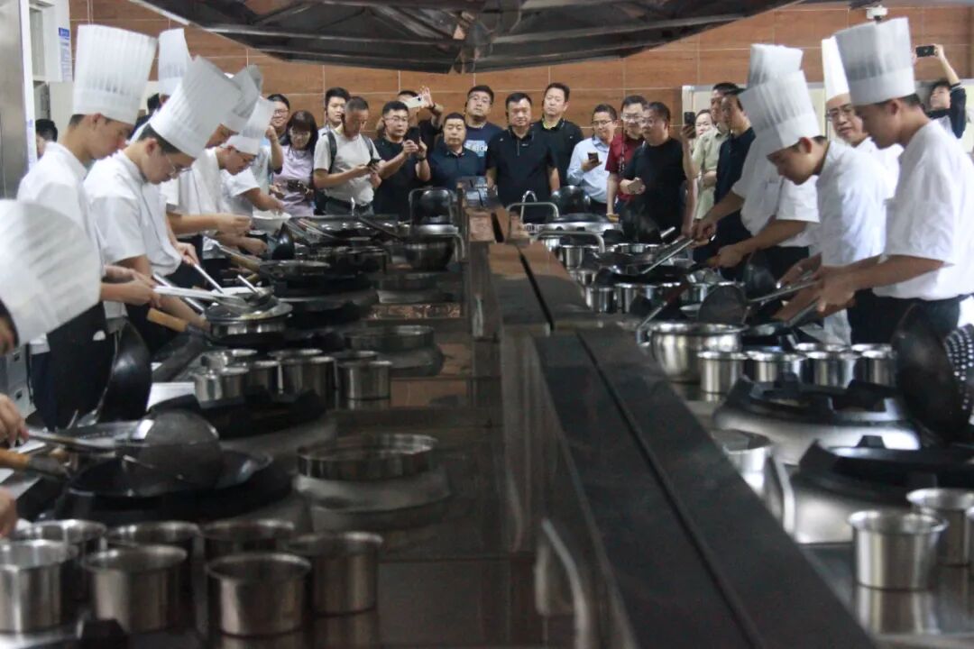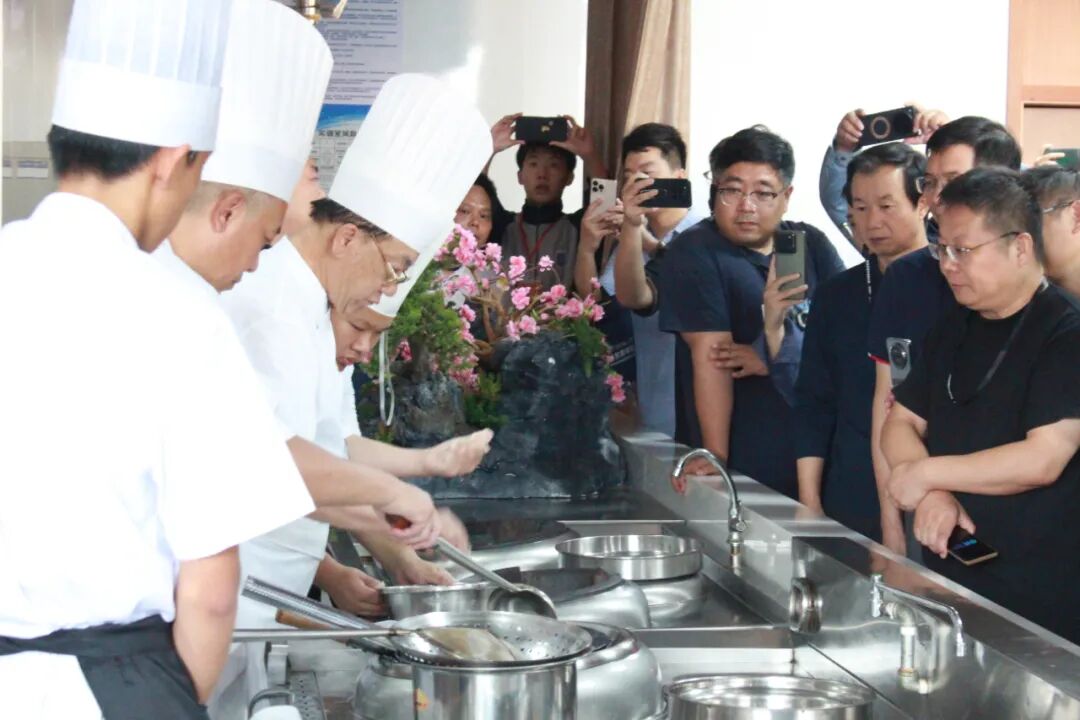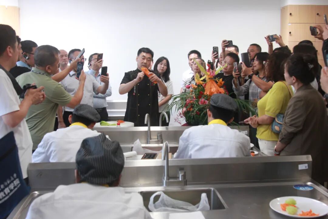为促进校际间的经验交流与资源共享,研修班还组织校长们走进沈阳市外事服务学校。在沉浸式交流过程中,校长们深入实训基地,实地观摩了中国烹饪大师、国家非物质文化遗产——辽菜传统烹饪技艺代表性传承人刘敬贤,“齐派”食雕掌门人齐雪峰,中国烹饪大师、辽宁省非物质文化遗产——御膳制作技艺代表性传承人李齐飞,沈阳鹿鸣春饭店行政总厨、盛京大工匠张阳,沈阳老边饺子馆第五代技艺传承人郑春香等行业名家与学校烹饪专业教师“校企共育、双师授课”的教学实践场景,让参访校长直观感受到了产教融合下的育人活力。校长们驻足观摩,不时用手机记录教学细节,并围绕“如何引入行业大师资源、构建‘大师+教师’双师教学团队”“怎样将非遗技艺、传统技艺融入专业课程体系”等话题展开热烈讨论。学校党委书记马英向校长们介绍了学校的基本情况,着重梳理了学校在新时代以来改革发展的历程,详细解读了学校在内控管理方面的体系建设、制度创新与实践成效,清晰呈现了学校发展的脉络与成果。校际访学搭建了良好的交流平台,校长们分享了各自的办学经验与困惑,探讨了职业教育发展的新思路、新举措,为未来开展校际合作、推动区域教育高质量发展奠定了坚实基础。