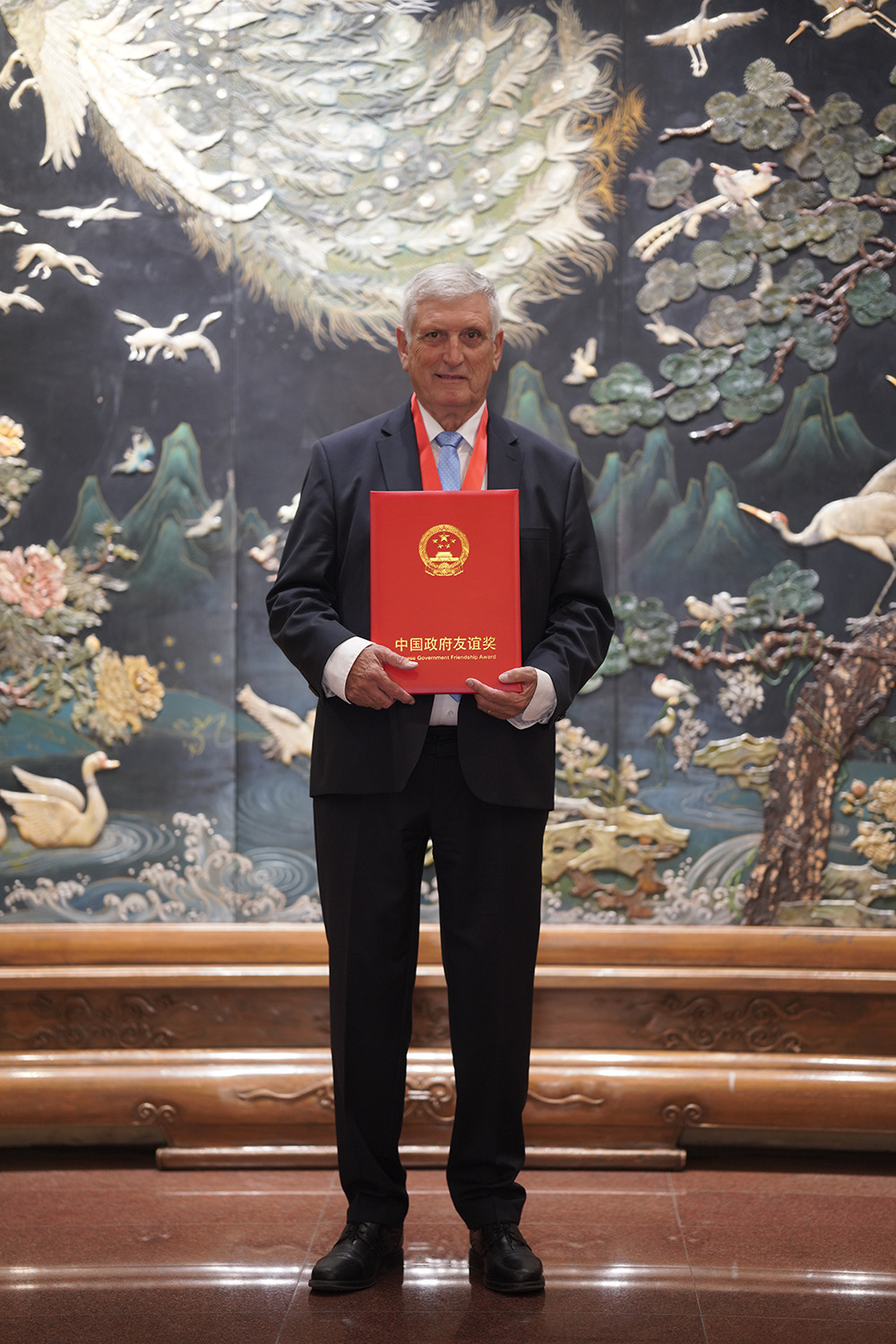 中国政府友谊奖,是中国政府为表彰在中国现代化建设和改革开放事业中作出突出贡献的外国专家而设立的最高奖项,由国务院于1991年正式设立,2025年共有50位优秀外国专家获此殊荣。海维尔·里斯·托马斯(HywelR.Thomas)院士是辽宁省20年来第3位获此殊荣的省属高校外籍专家,也是学校和阜新市该奖项首位获得者。