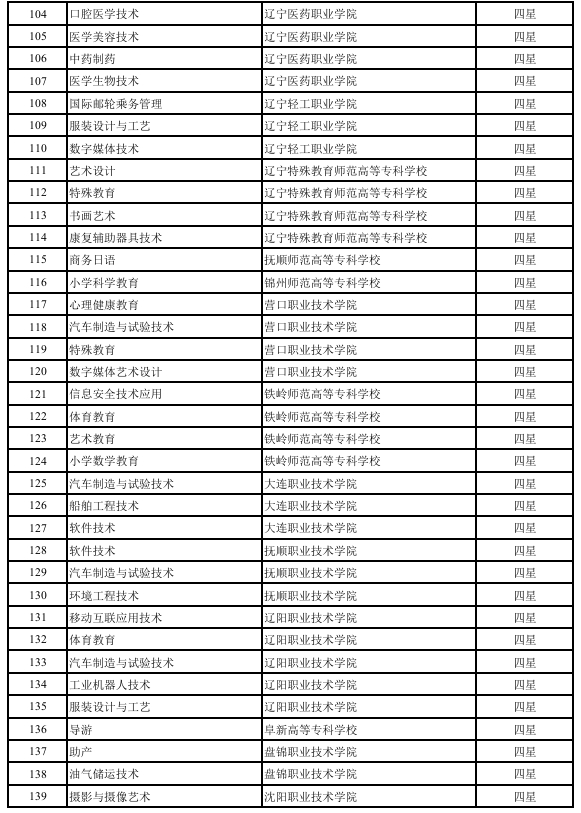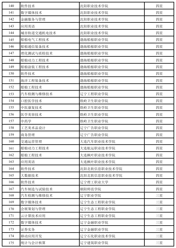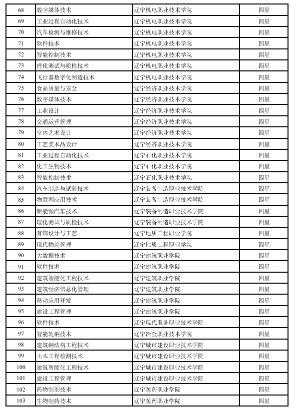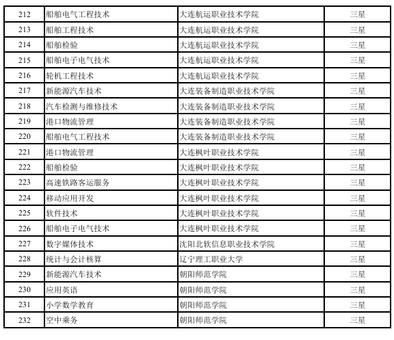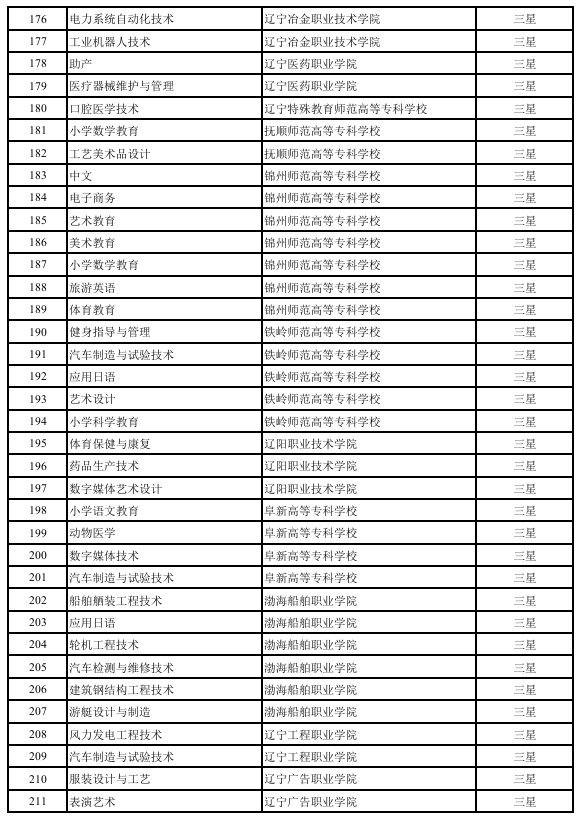 附件:辽宁省第三批高等职业教育星级专业评估结果拟确定名单