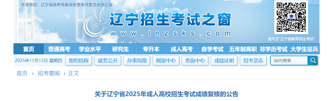 复核结果以《辽宁省成人高等学校招生考试分数复核通知单》为准。