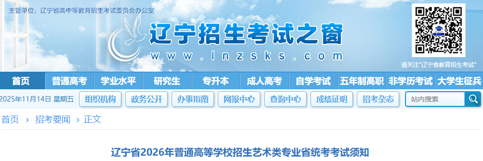 艺术类考生高考报名工作按照《关于辽宁省2026年普通高等学校招生统一考试报名工作的通知》《辽宁省关于进一步加强和改进普通高等学校艺术类专业考试招生工作实施方案(试行)》《辽宁省2026年普通高等学校艺术类专业招生工作实施办法》等文件执行。
