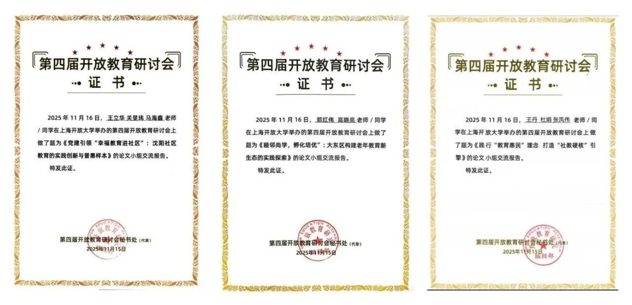 2025年11月15-16日,第四届全国开放教育交流会在上海召开,在全国54个优秀课题中,沈阳市3个社区教育创新实践课题在交流会上作交流分享获得好评,分别是沈阳市教育局《党建引领“幸福教育进社区”:沈阳社区教育的实践创新与普惠样本》、大东区教育局《“睦邻尚学,孵化培优”:大东区构建老年教育新生态的实践探索》、和平区教育局《践行“教育惠民”理念打造“社教硬核”引擎》。