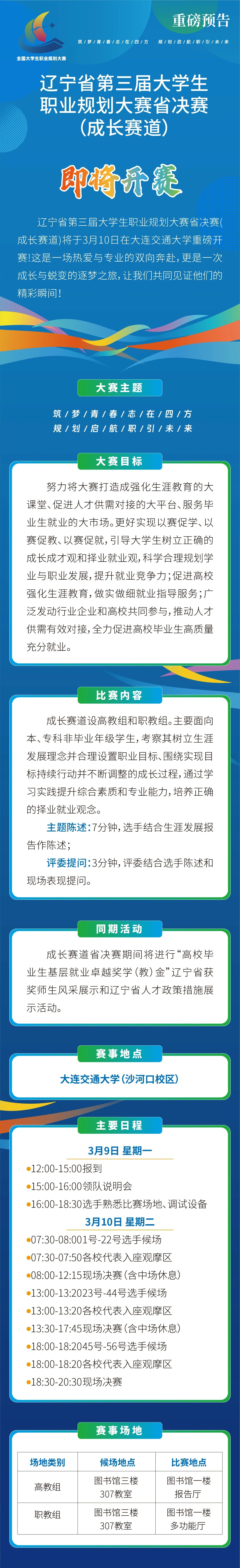 辽宁省第三届大学生职业规划大赛省决赛(成长赛道)即将开赛