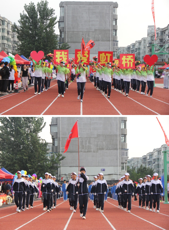 上午7时,随着激昂的《运动员进行曲》,各班级方阵迈着整齐的步伐依次入场。他们高举“我爱虹桥”标语,手捧花束,成为虹桥校园中最亮丽的风景线