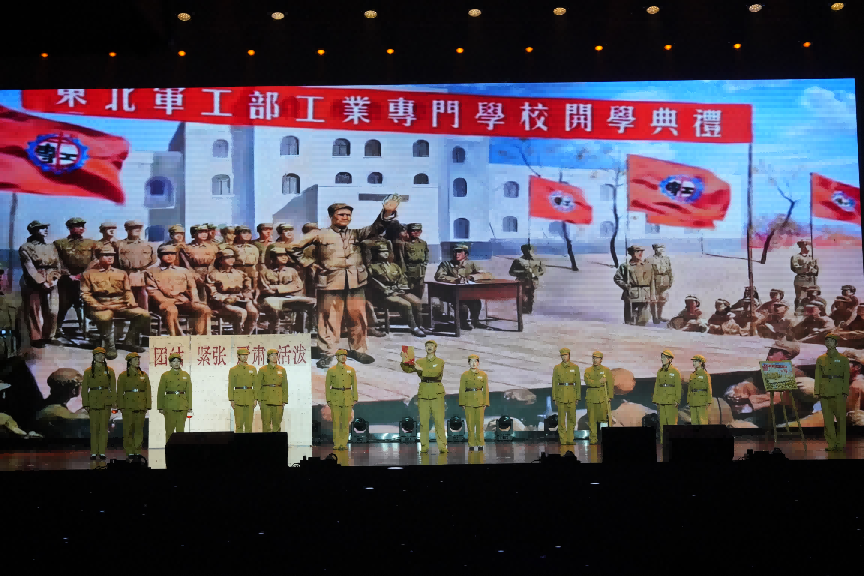 晚会多个细节的设计和策划,让多个亮点成为精彩定格。晚会现场,以时空对话的情景演绎模式还原了硝烟弥漫的战争岁月,实现了与首任名誉校长,中国无产阶级革命家、军事家、军事教育家何长工隔空相聚。晚会还邀请了原沈阳工业学院副院长,年逾八旬的曹秀吉作为特别嘉宾,讲述了他与学校的特别渊源,分享了作为新中国培养的知识分子,见证了一个努力向前、发力赶超的时代的深切感怀。