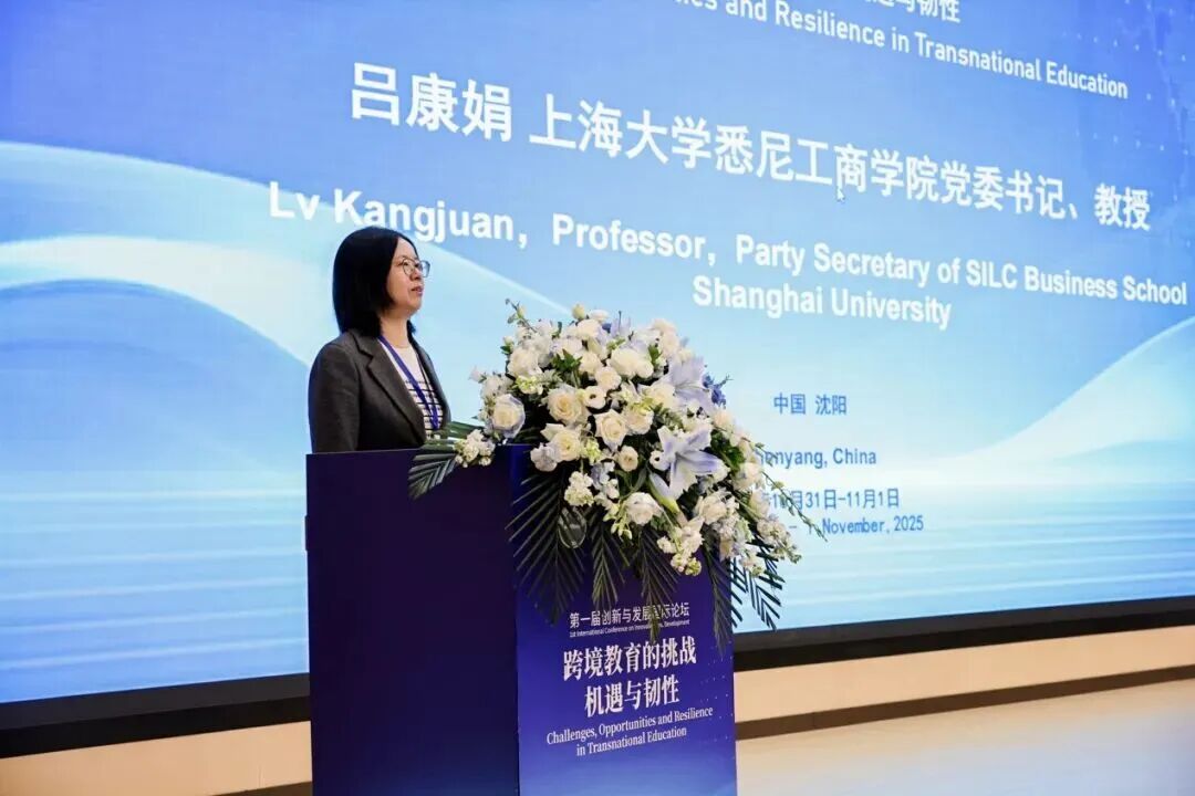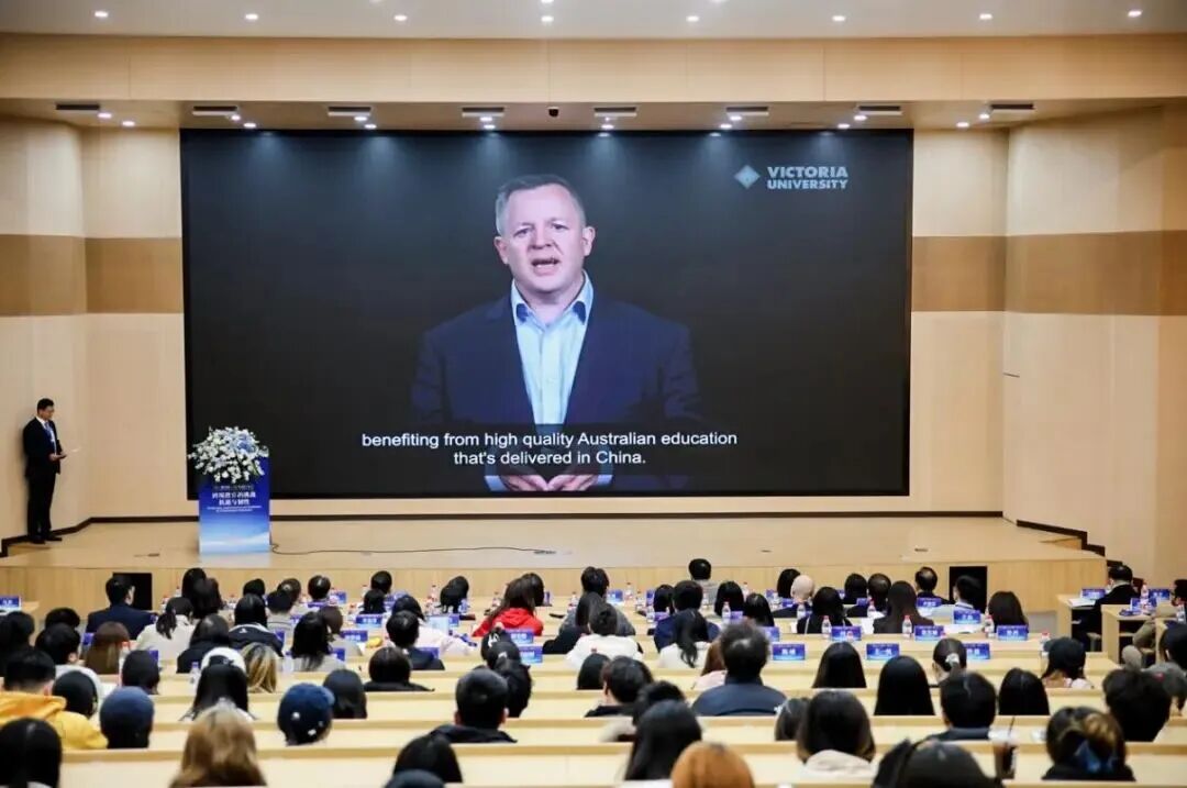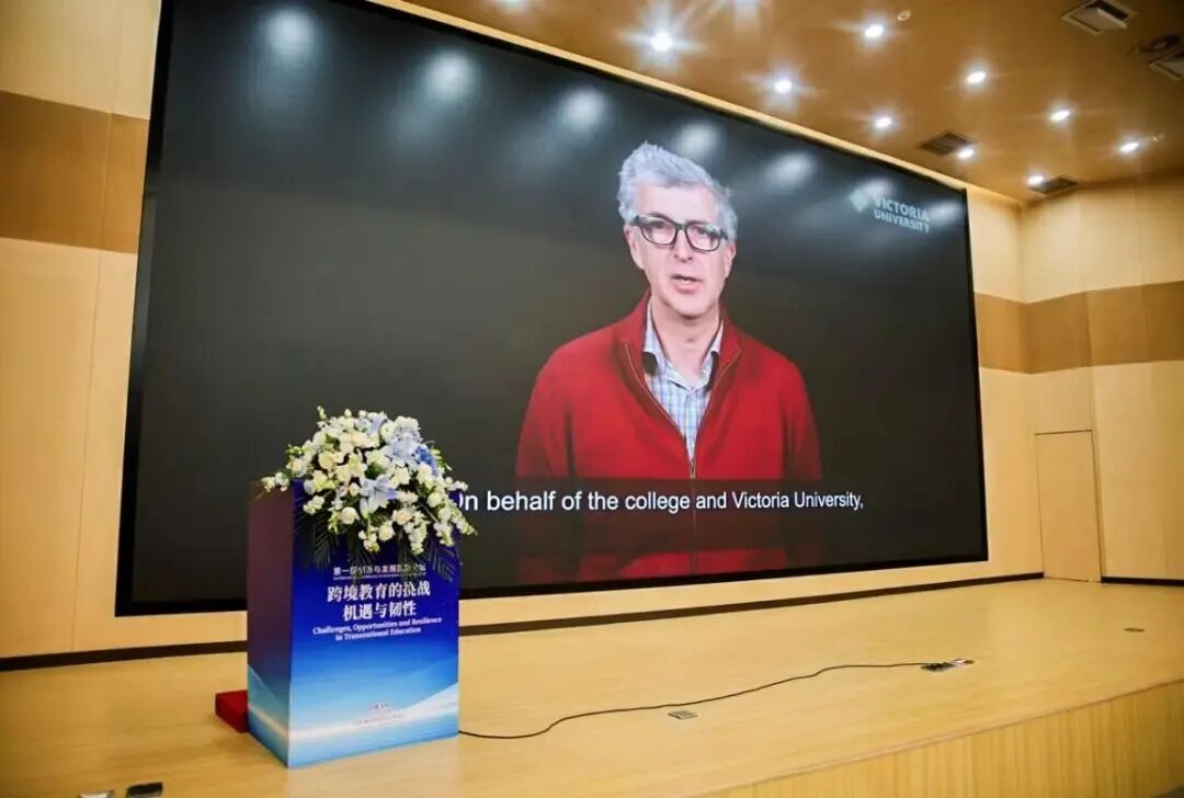维多利亚大学副校长RobStrathdee教授通过线上方式致辞。他强调,本次会议聚焦跨国教育、教学创新与可持续发展等核心议题,为全球学者、行业专家与青年学子搭建了高层次对话平台。