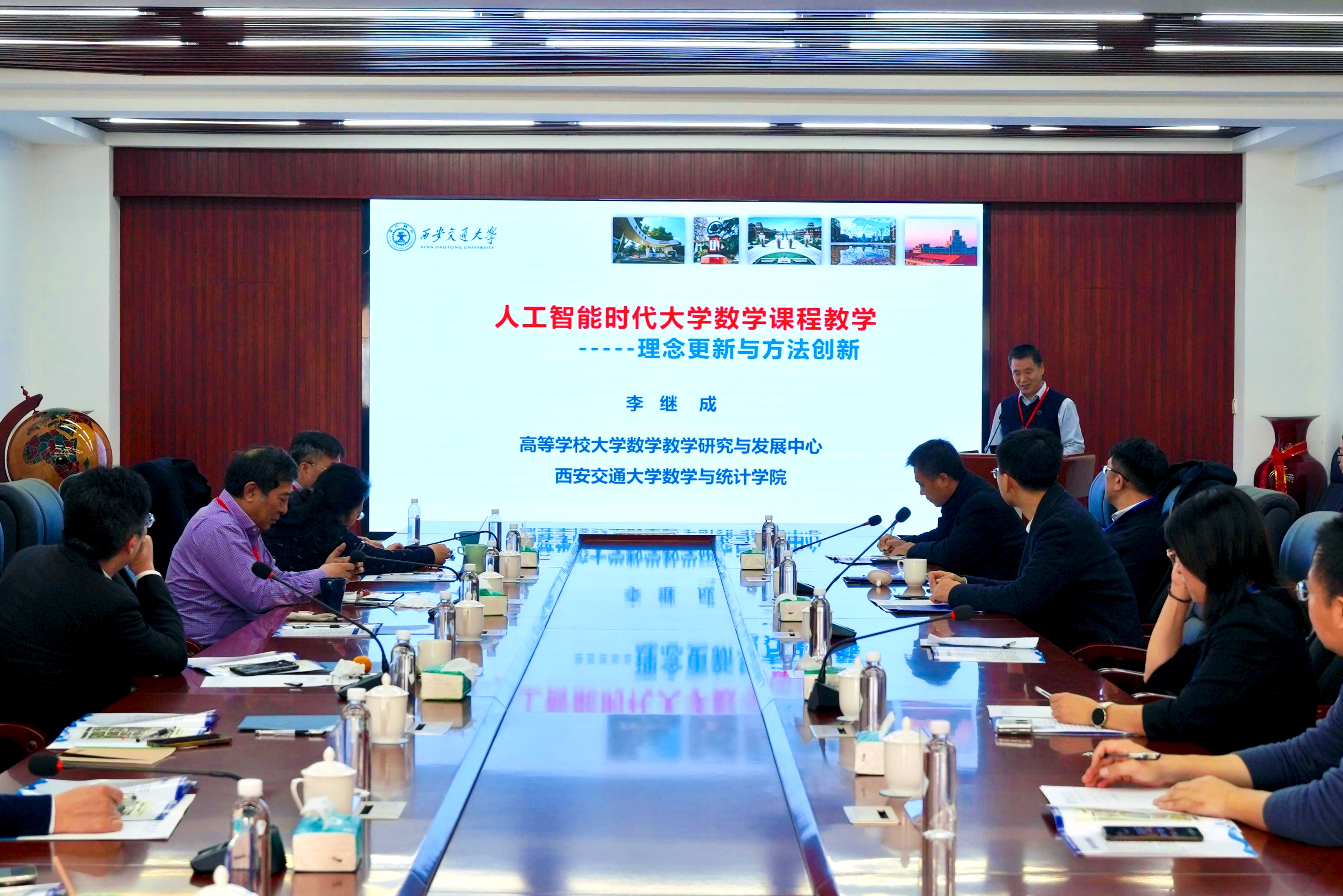 会上,李继成作了题为“人工智能时代大学数学课程教学理念更新与方法创新”的主题报告。他分析了人工智能赋能教育的相关政策,介绍了相关的人工智能大模型,并从教师发展、教学资源、课程建设、教材建设、教改思考等方面提出了自己的观点。