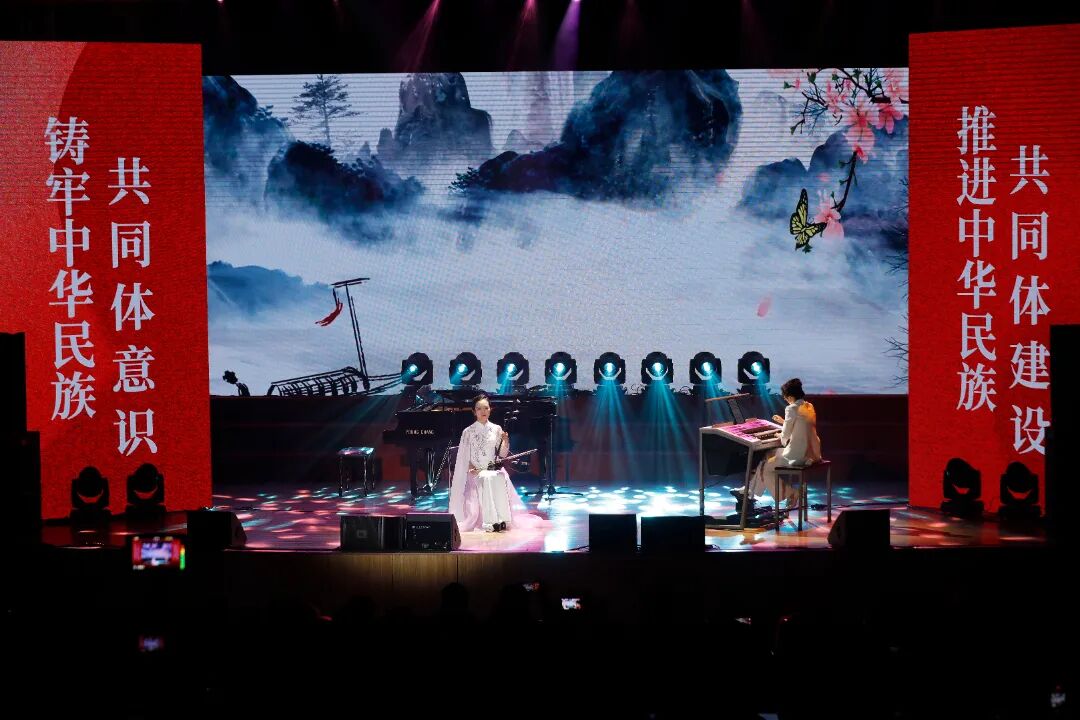 11月11日晚,沈阳工业大学联合辽宁省音乐家协会、沈阳市音乐家协会共同举办的铸牢中华民族共同体意识专题美育项目“华韵新声·共铸同心”音乐会在工大会堂精彩上演。沈阳工业大学党委副书记柯丽,辽宁省音乐家协会副主席、沈阳音乐学院副院长庞渤,辽宁省音乐家协会秘书长刘蕾,沈阳音乐学院音乐教育学院院长吴家军,学校党委统战部、团委以及美育中心有关同志,师生代表近800人共同观看演出。