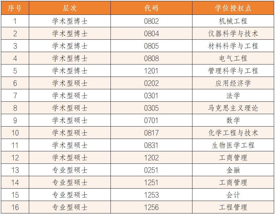 此次参评的16个学位授权点涵盖学术型博士、学术型硕士、专业型硕士三大层次,覆盖机械工程、仪器科学与技术、应用经济学、法学、金融、工商管理等多个热门学科领域,具体包括5个学术型博士点、7个学术型硕士点和4个专业型硕士点,学科布局全面且特色鲜明。