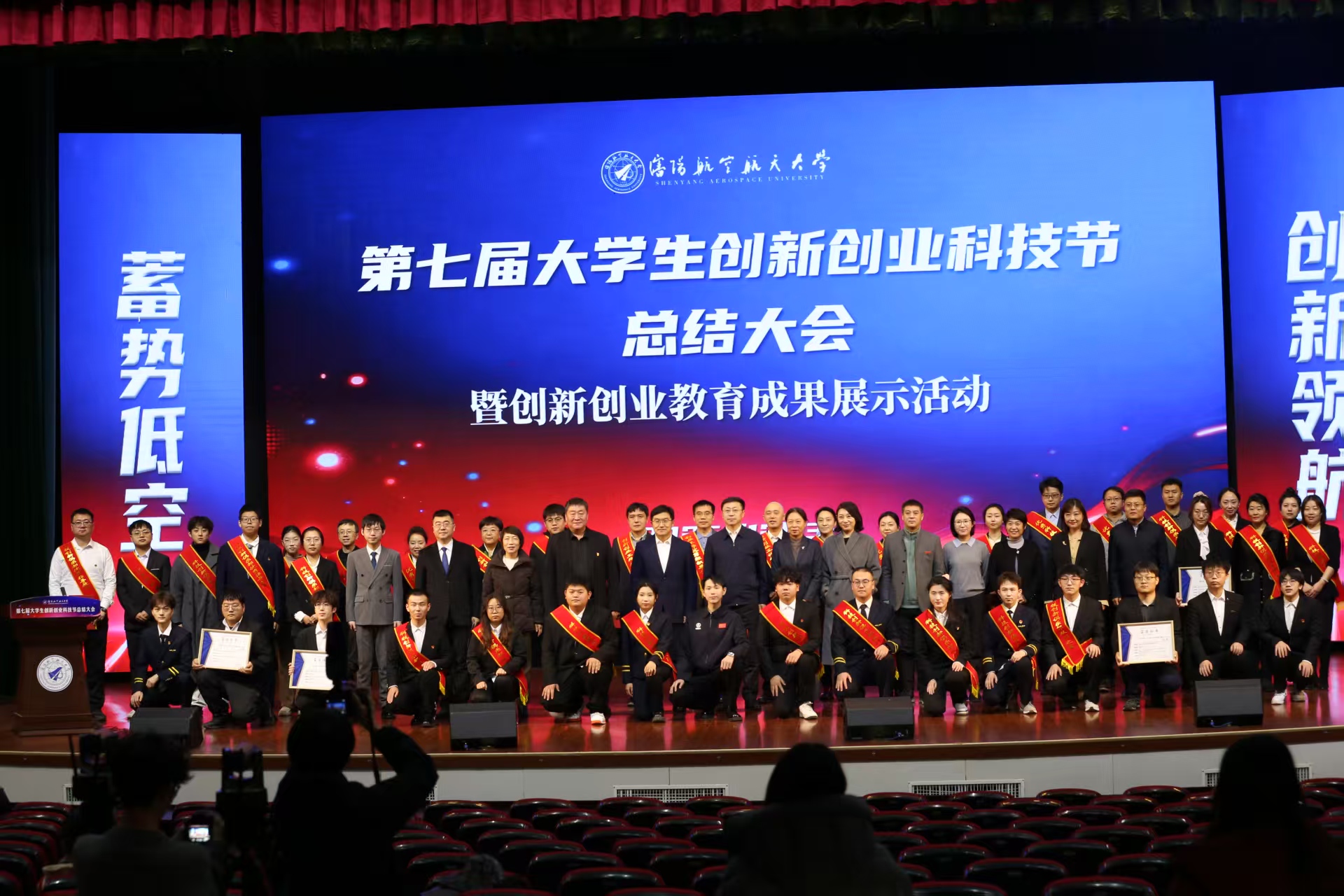 12月3日,以“蓄势低空·创新领航”为主题的第七届大学生创新创业科技节总结大会,在沈阳航空航天大学蓝天剧场盛大启幕!校党委书记范振伟、校长李润东等领导携手各学院负责人、师生代表共2000余人齐聚一堂,在成果展示的闪耀光芒中、先进表彰的热烈氛围里、优秀项目的精彩路演中,尽显沈航学子勇于创新的澎湃活力!