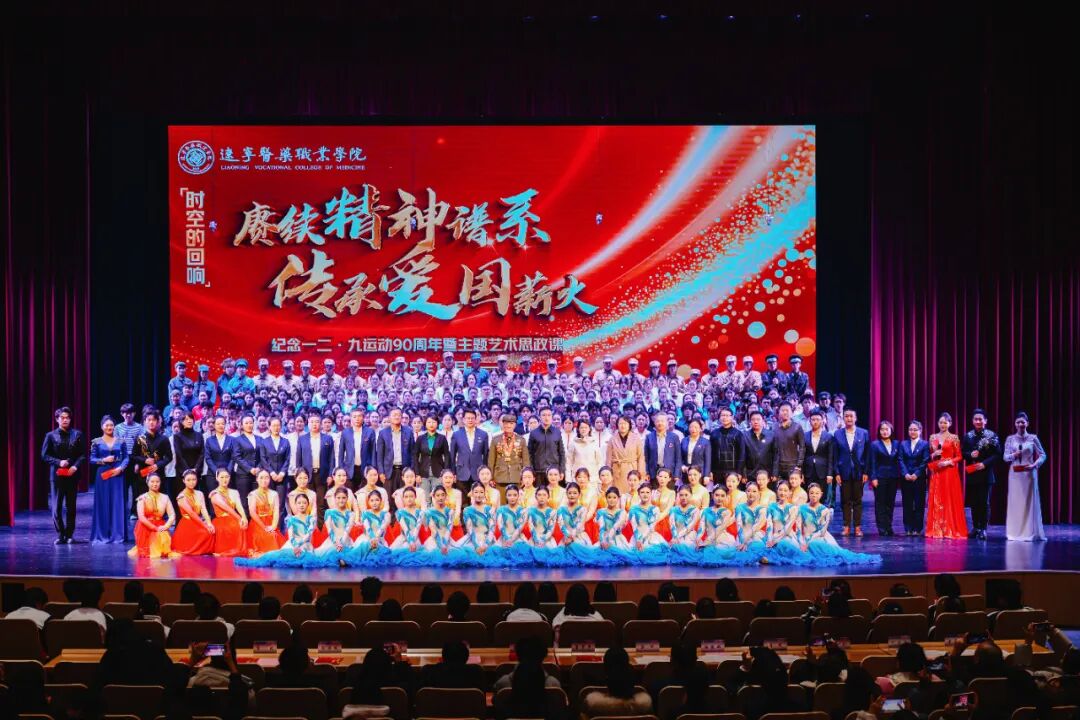 忆往昔烽火燃情,承精神薪火永续。12月9日,辽宁医药职业学院《时空的回响——赓续精神谱系・传承爱国薪火》纪念一二·九运动90周年暨主题艺术思政课圆满举行。辽宁省委教育工委宣传部部长、省教育厅思想政治工作处处长刘海君,本溪市委教育工委专职副书记曹中平,本溪团市委书记陶冶,沈阳团市委学校部部长张帆应邀出席,学院领导班子成员、中层干部、师生代表,及沈阳药科大学、辽宁中医药大学、辽宁金融职业学院、本溪市卫生学校等兄弟院校师生代表千余人齐聚行知大学生活动中心,共上一堂沉浸式红色艺术思政课。