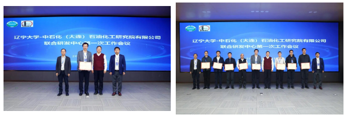 会上举行了联合研发中心主任和专家委员会委员聘任仪式。辽宁大学及中石化大连院相关职能部门负责同志代表双方单位,分别介绍了各自研究领域、技术需求、产业方向及合作重点。中石化大连院副总工程师、科研管理部经理张喜文还对联合研发中心的工作方案及研究方向做了详细介绍。