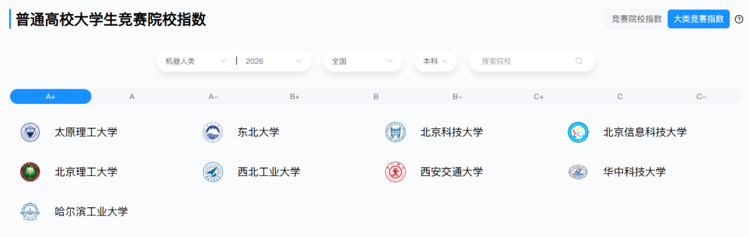 机器人类竞赛指数(第7轮)全国A+高校(共9所)