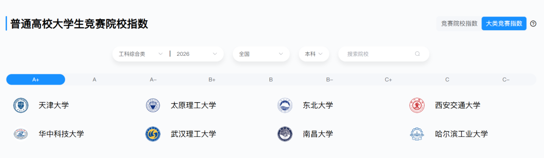 工科综合类竞赛指数(第1轮)全国A+高校(共8所)