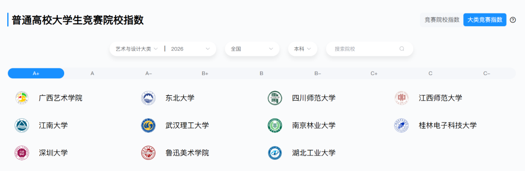 艺术与设计类竞赛指数(第4轮)全国A+高校(共11所)