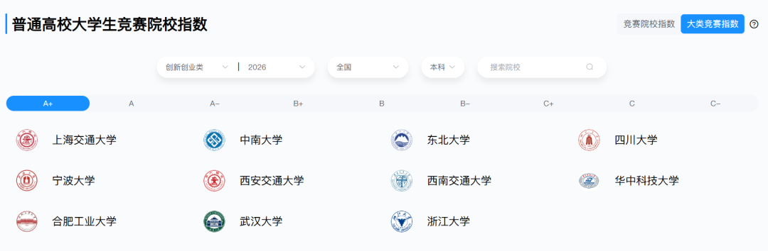 创新创业类竞赛指数(第4轮)全国A+高校(共11所)