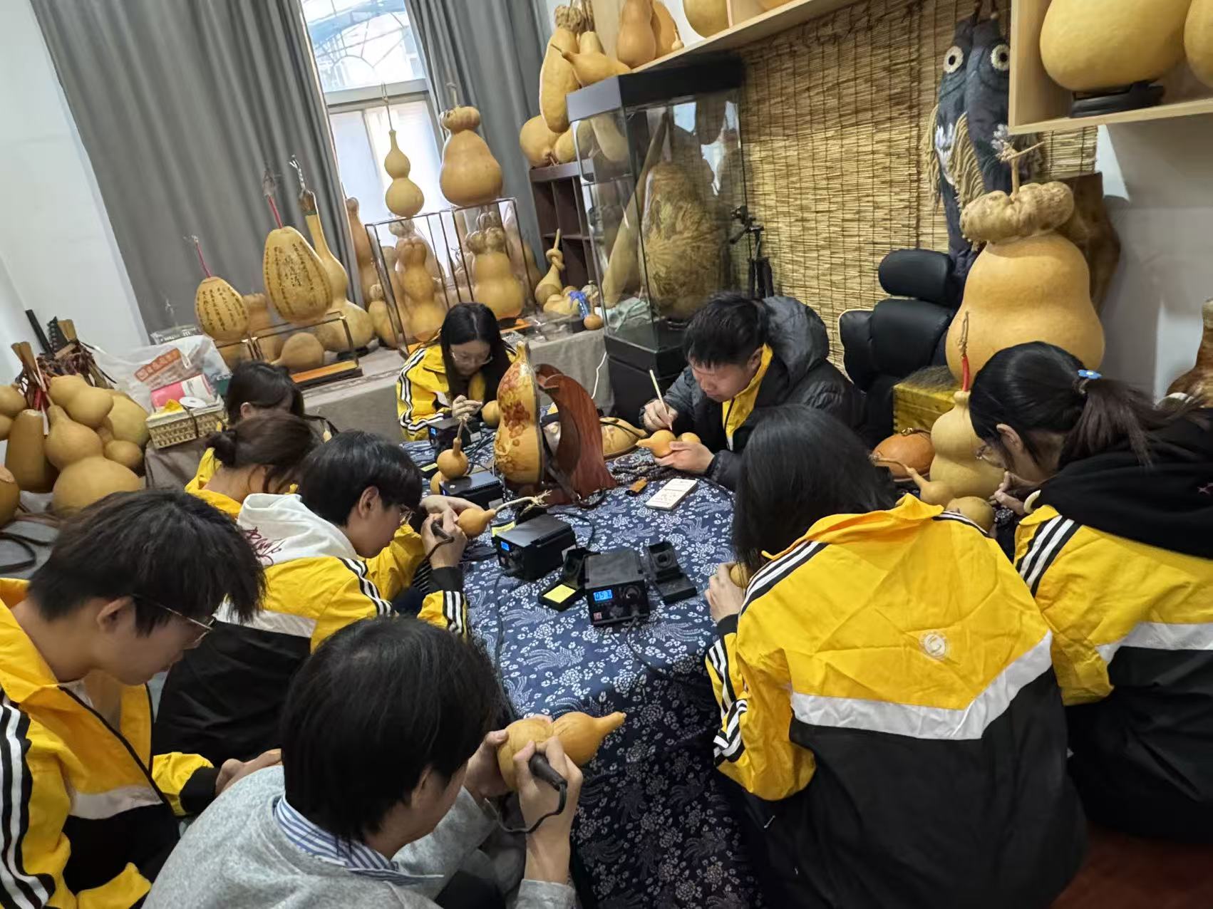 为锚定文化传承的青年坐标,厚植中华优秀传统文化的精神根脉,2025年11月26日,沈阳工业大学辽阳分校化工装备学院团委书记张云虹与辅导员张诗婕带领该院24级油气储运工程团支部学生,走进辽阳葫芦烫画非遗传承人陈鹏的工作室,开展了一场以“烫笔凝香承古韵,襄平葫芦藏匠心”为主题的沉浸式团日活动。这不仅是一次与传统技艺的亲密接触,更是一堂生动的“文化自信”实践课。