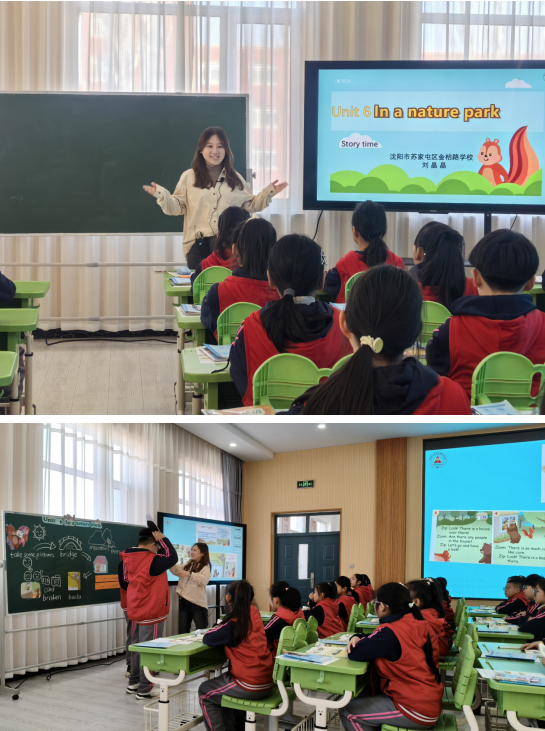 接下来来自苏家屯区金桔路小学刘晶晶老师带来了一堂精彩的英语展示课《Unit6InthenatureparkStorytime》。课堂上,刘晶晶老师巧妙运用AI技术,通过沉浸式情景创设、智能互动游戏、实时语音测评等创新方式,将抽象的故事内容转化为生动直观的教学场景。学生们在AI工具的辅助下积极参与对话练习、剧情演绎,不仅加深了对课文的理解,更提升了英语表达的主动性和准确性,充分展现了AI技术与小学英语教学深度融合的高效课堂魅力,赢得在场教师的一致好评。