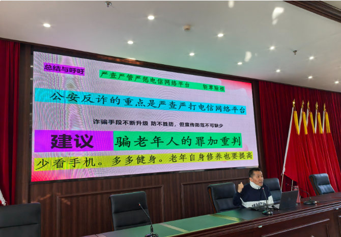此次宣讲行程紧凑且艰辛,王刚老师坚持每天两场报告,往返于沈阳与各城市之间,基本是当天往返,每天奔走在路上至少需要五六个小时,风雨无阻。讲座中,他结合十余年反诈工作经验,从多维度为中老年群体解析反诈形势:深入剖析当前中老年群体被骗的严峻形势与严重危害,让大家认清诈骗的隐蔽性与破坏性;聚焦高发的养老养生、投资理财、购买保健品及各种骗局和骗术,通过真实案例还原骗术的套路,细致拆解受骗背后的心理与认知诱因,让听众直观感受诈骗的风险。